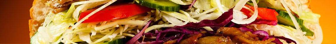 Sałata, Pomidor, Ogórek, Kukurydza, Czerwona cebula, Papryka, Mięso kebab, Sos czosnkowy -